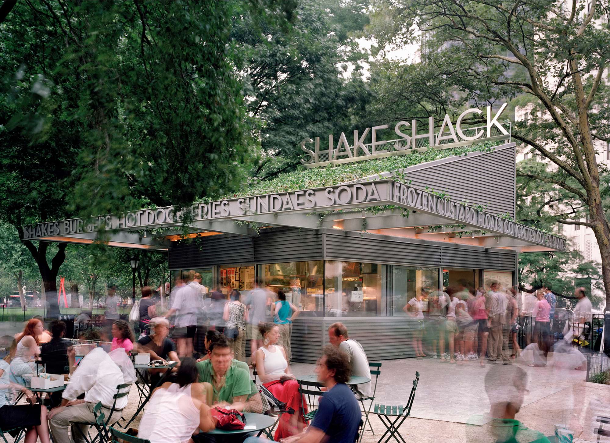 Эта американская бургерная, можно сказать, началась с дизайн-кейса. Уже первое полноценное заведение было (и остается) выдающимся объектом дизайна — сомасштабный парку, с грамотно подобранными материалами и, самое главное, с визуальной отсылкой на американские придорожные закусочные павильон. Локация спровоцировала невероятный ажиотаж и 2–3 часовые очереди (конечно, не забываем о том, что, в первую очередь, в Shake Shack вкусные бургеры). Но показательна вера компании в хороший дизайн: масштабируясь, они опираются на тот же подход — открывают рестораны в лучших локациях, а каждое новое заведение проектируется индивидуально с учетом локального характера.